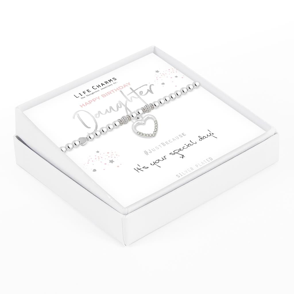 Introducing our new Happy Birthday bracelets. Featuring silver plated elastic bracelet with crystal rondelles between beads and hanging open heart charm. Attached on silver foiled card with funny saying "It's your special day". Packed in elegant white gift box. All jewellery is finished to the highest standard & E-coated to prevent any tarnishing.
